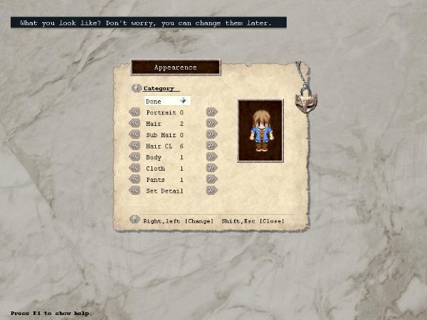 ※enter-重掷/p-外观设定/shift或esc-确定。