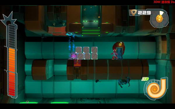 这里要赶快的从左边一直升上跳。最后把绿色格子炸上去,把阀门打开就过去