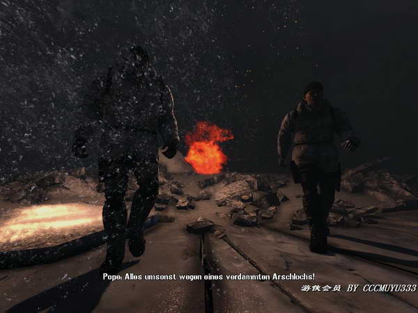 3:打下飞机后,提示队友已经埋好炸弹,有4分钟让你一路原路杀出去;这里注意路不要绕乱了,船内空间比较小,合理利用F键的拳击,在船内出路在船身上有箭头提示,一路杀出去。