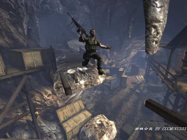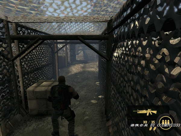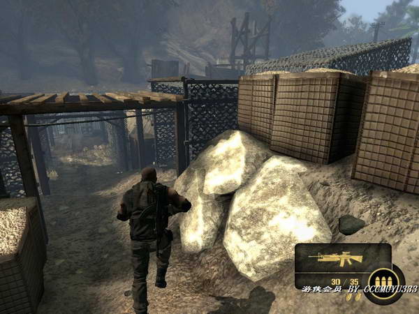 2:进入地下通道,这个通道有点长,照例是一路杀出去,来到外面。外面有一架机关枪碉堡,照着掩护一点点清过去,最后来到机关枪碉堡附近,把敌人杀了。