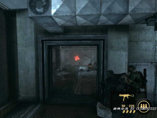 2:然后进去基地内部,做电梯去地下,一路上各种敌人,全部清过去;最后来到核心地区,发现了原子弹,队友在原子弹上装上摧毁装置,为队友争取时间。