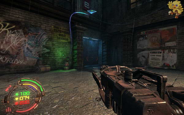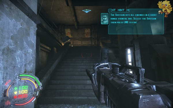 到二楼会有新的机器人,像人形的,用机枪打他们最快,然后清理到左边去,会看见一个小巷子,前面有个机器人在电脑面前做什么东西,打掉,过去开启。