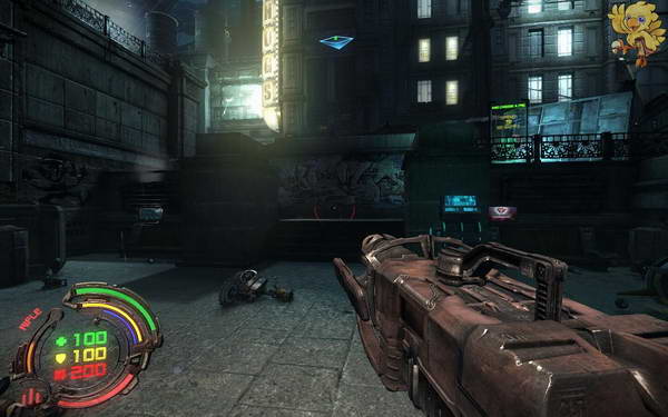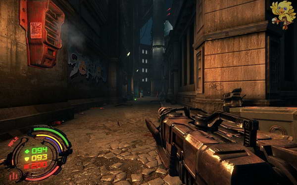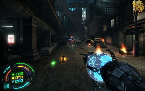 进去后,前面会从箱子里跳出小机器人,清理掉就从那梯子上去,上去就准备大战吧,会有很多的人形机器人过来,慢慢清理干净,旁边的路又是被封闭了的,就从前面的巷子里进去。