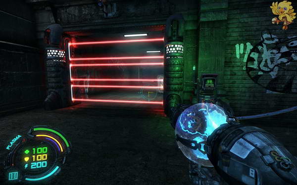 进去后清理怪物,打开电梯开关,乘上电梯上二楼的停车室,上到了二楼,又是一整乱战,各种爆炸...杀到前面看到有红色激光条那,去打开开关,从那里下去,我们就到了刚才封闭了