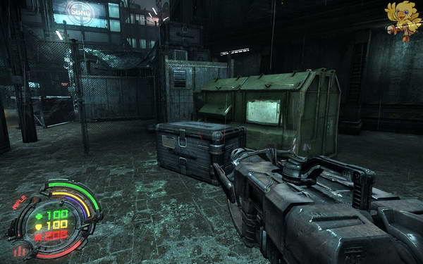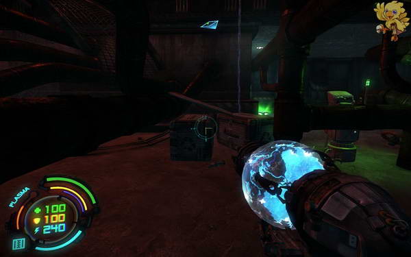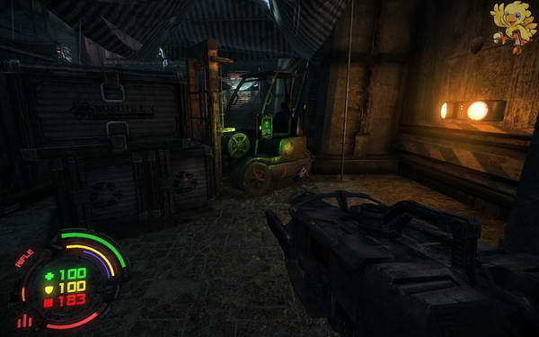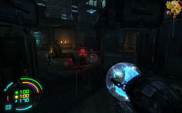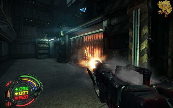 进去后打掉那些箱子不然打爆前面发动机的时候会出来很多小机器人,去前面打包发动机,看地上的的电缆,打爆后旁边的门就可以过去了。