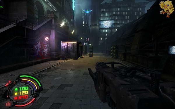一出来从这跳出来,去前面升级武器,最好是把榴弹炮和激光强的激光都升级了..。后面要杀大boss了,升级完成,从右边走,进入巷子前面去。