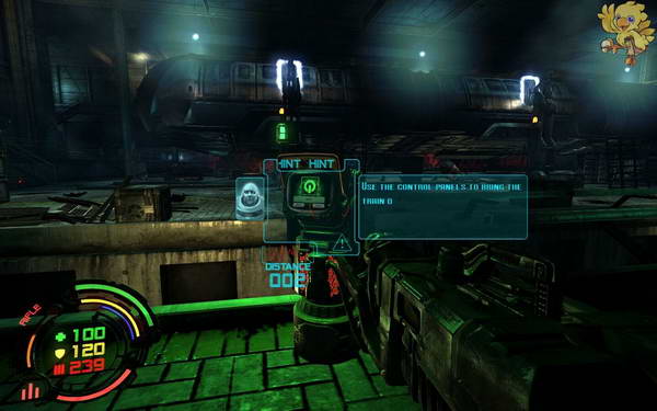 进去后通过狭窄的过道,到达一个电车修理间,先清理怪,然后去打开两边的按钮,把火车放下来。