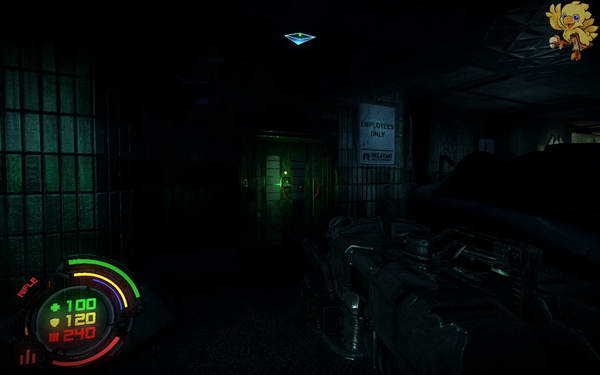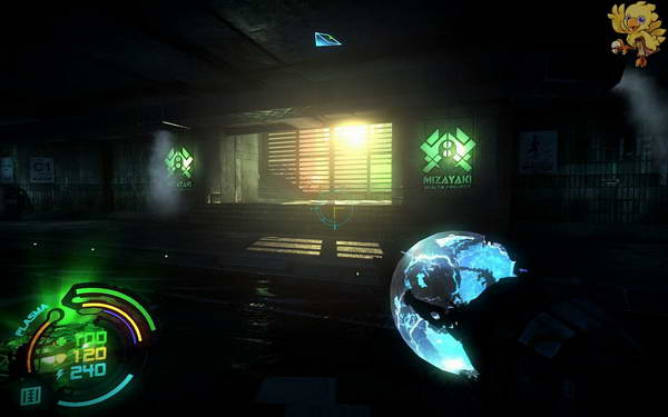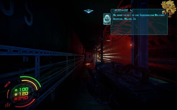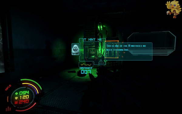 进去后绕弯到达外面,看见很大一个boss,过去进入前面的门清理对面的机器人.清理完后旁边的门灯会变绿
