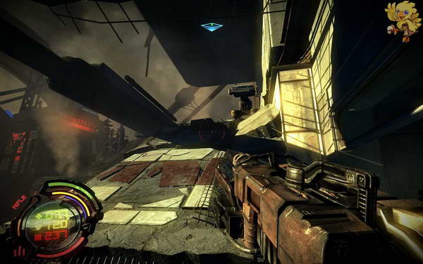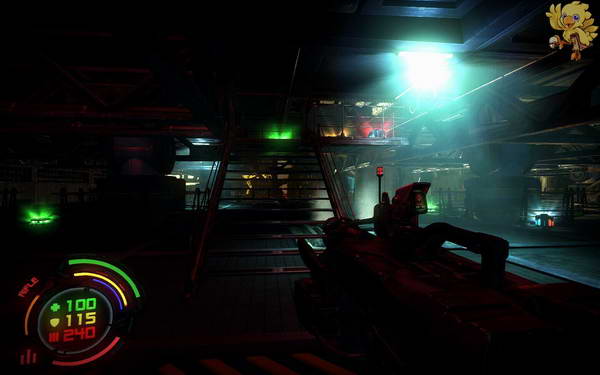 出来直走从前面的楼梯上去,上去过一个通道在那清理小机器人,小心被油管的火喷到,退出来打,清理完后出去,看到很大一架飞船,飞船过来的时候打上面的油桶,飞船会被击落获得一个成就,然后我们在前面打开一道门。