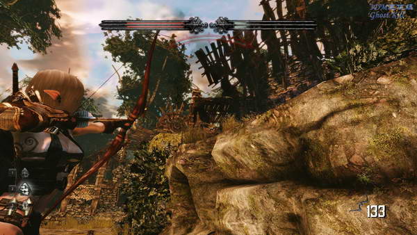 敌人数量甚至让我觉得是无限刷兵的,坚持上几分钟都杀光了之后去投石机那里, 使用投石机炸掉左边的乱石堆,操控方法和机械弓一样。