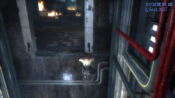 上来之后看到有人困在着火的房间里,他身后的门打开后可以让水流进来。爬上左边的的梯子上二楼,上来后先不要动,等前边的路断了后跳过去,然后顺着管道爬到另一边,进入房间里,拿到尸体上的模组。