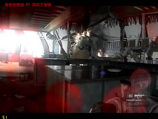 消灭光楼内敌人后可以专心对付直升机了,在其射击间隙瞄准反击。要有耐心,找掩体躲避射击,不能和直升机对拼火力,那是自寻死路。