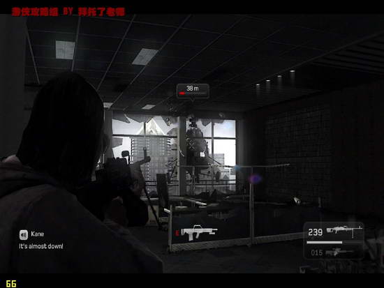 躲起来,靠Kane手上的手枪杀敌,Kane可是打不死的小强哦。捡取尸体上的枪支加入作战吧。