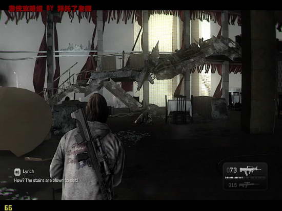 Lynch与Kane的直升机坠毁在大楼顶,两人准备下楼去寻找Shangsi。一开始Lynch手上没有武器。所以千万不要空着手就冲上去了
