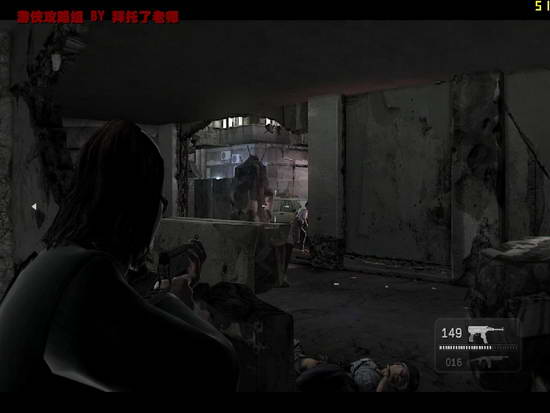 把众多条子打睡着后离开车库,来到一个废墟,注意窗口中出现的敌人