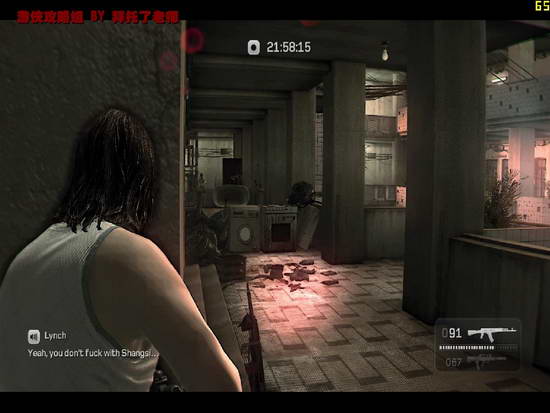 清除车库的敌人,来到公寓,两人分两路行动。找好掩体躲避从Kane那条路上敌人射来的子弹