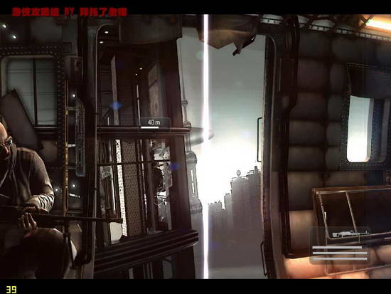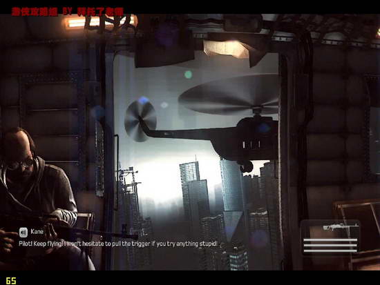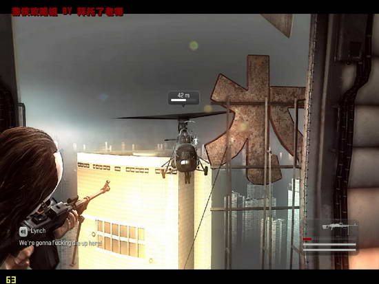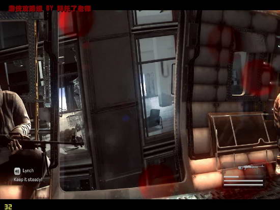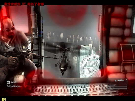 直升机绕着大厦盘旋,用机枪射杀敌人。同样是按右键瞄准,左键射击。机枪的子弹在用完一条后需要换子弹。注意在血量较低时要躲在机甲后恢复。