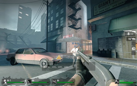 出门后向左走,特别注意那几个BOSS级的僵尸,简单说下:SMOKE可远距离用舌头把人卷走,打掉后会爆出深厚的烟,很呛人的;;HUNTER是个快速的杀手,类似HL2中的快速僵尸,会把你推倒的哦(把你当萝莉了,先奸后杀,晕!);Boomers会扔炸弹(还是吐东西?),被袭击的人会暂时失去战斗力,眼前一片绿光了,呵呵。这家伙一般躲在不晚发现的地方,小心为好。散弹枪的威力好像比HL2的大的多,可一下干掉近处的三四个僵尸,别看僵尸冲过来一群,几枪就能搞定的。另外普通僵尸很蠢的,你把炸弹投出去后,他们竟然跑过去围在那里看,晕!那个WI*HES会发出凄惨的哭声,听到后最好把手电关了,别去惹她,否则你会死的很难看的。她一般都是专注于自己的事,趴在那里不知忙什么。