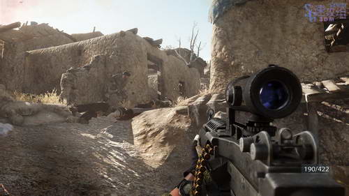 穿过一个废墟后来到图中的位置,和队友一起干掉冲过来的敌人,然后换出指示器标记这栋房子,几秒钟自后两架轰炸机飞过,之后又是铺天盖地的泥土,不料敌人如此小强,居然又出现来,这次来了更多,总之,继续撑住吧。。。。。