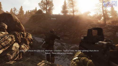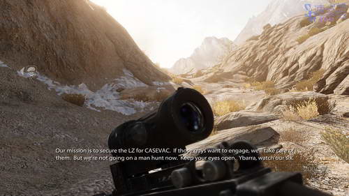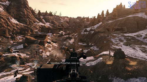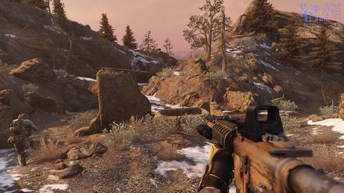 对面山坡上有很多敌人,一一狙死就行了,等队友到了安全位置后完成任务过关。