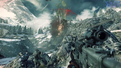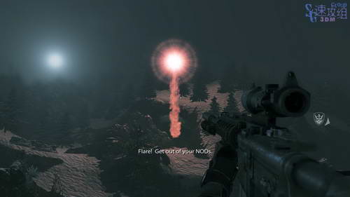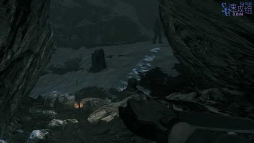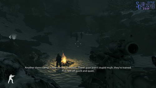 和MW2雪地关相反,这次是队友火力掩护我们。等敌人和队友开战后立刻找掩护,干掉敌人后去敌人那座山头。