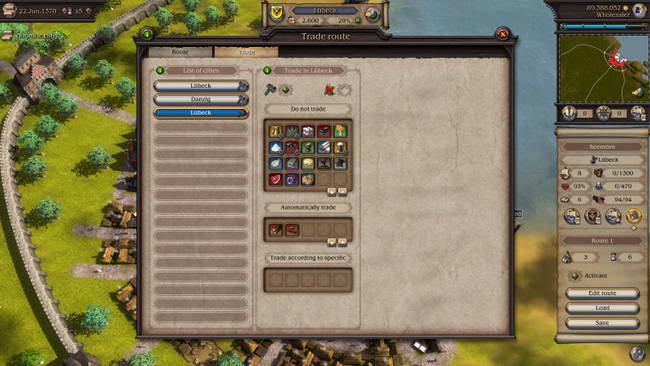 首先你要设定一个出发点,譬如下图的LUBECK。在出发点不要点击任何贸易货物到下面的2个交易栏