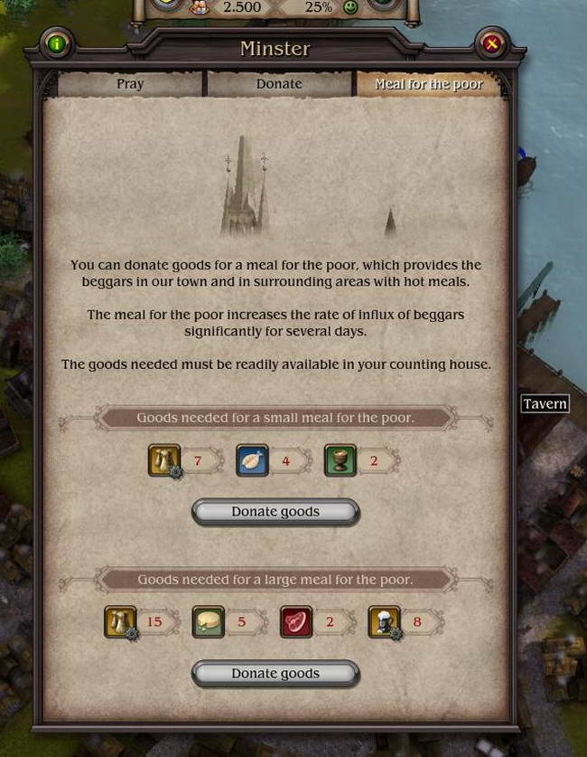 MEAL FOR THE POOR。这就是提供一定量的指定食物给城市的穷人,但是前提你的储藏室必须有指定的食物量,否则会起到反的效果。