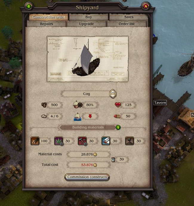 CONSTRUCTION ORDER。在这里你可以进行船只的建设。由于船只的建设比较花费时间,而且耗费材料,所以前期的话不建议多造船只。资金充裕的话,建议去买船只