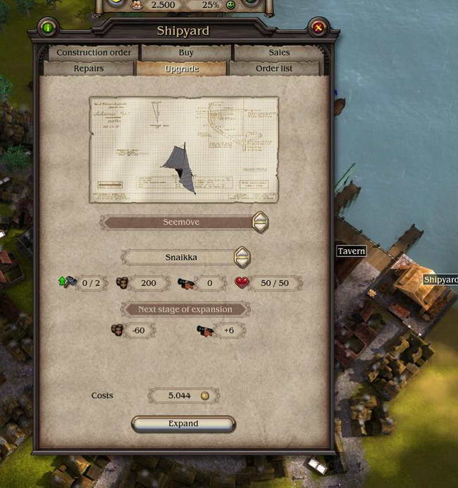 REPAIRS,修理你的船只。UPGARDE则是升级你的船只。升级的时候可以看到你那些方面升级了,主要是攻击力的升级,或者载货量的升级