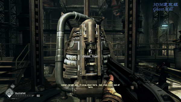 最后与友军会和,和他们一起杀光最后一个房间里的所有敌人,拿到目标的毒素, 然后按下旁边的开关,上升到二楼,从这里可以直接回到城镇里了。