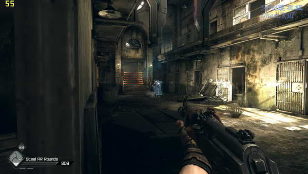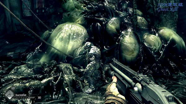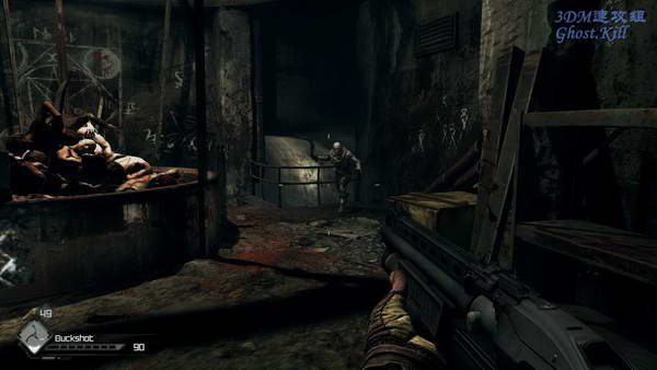 下楼之后来到一个很恶心的地方,虽然这个城市里很多地方都很恶心,但这个地方特别的恶心, 还有新的变种人,身上发着绿光,皮很厚,可以远程攻击也可以近战,但无非就是多费点子弹,照样杀掉。