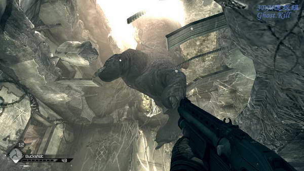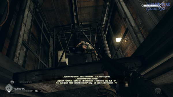 杀光所有敌人后Captain会把它鼓捣的那扇门打开,进去之后他又开始鼓捣电梯,结果电梯掉了下去, 玩脱了吧,不过他到没事,和主角分头行动。之后右侧会有个敌人破门而入,干掉之后从门出去来到监狱入口。