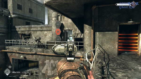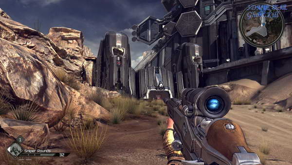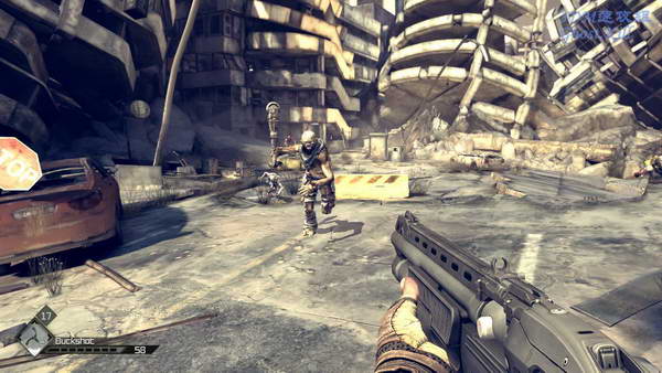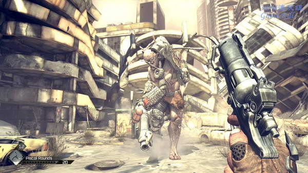 拿到数据后进入身后的门里,关掉能量罐之后继续原路返回,路上的狙击手比较多,但威胁不大, 他们大多数都在狙击周围的变种人,用狙击两枪干掉他们,一枪打掉头盔,另一枪爆头。