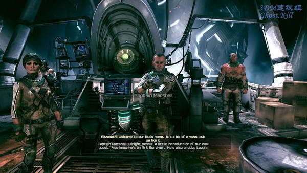 回到Captain那里后与其交谈,然后载入新地图。跟他到基地里和几位成员几个面,互相认识下, 然后接新任务,接到任务后从左边的通道来到电梯处,按下开关后上到二楼,这里是车库,外面是地铁城。