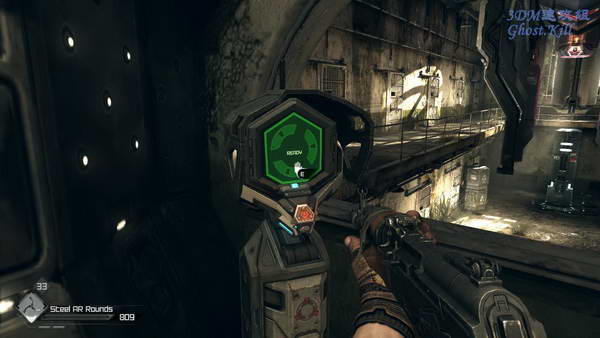 这里的屏障通过左边墙上的洞可以关掉,进去后干掉敌人,在桌子上拿到研究数据。