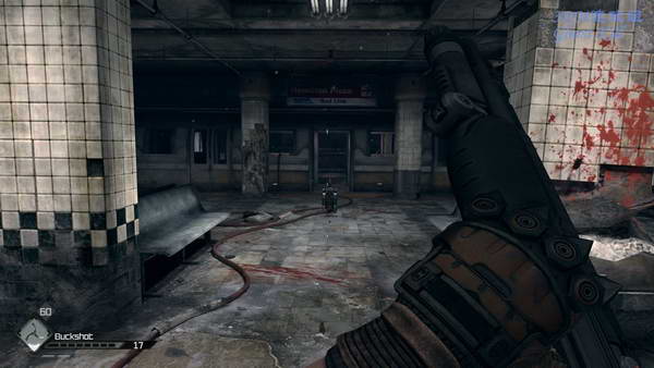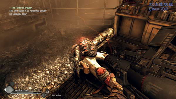 都杀光之后进入那堵破开的墙,来到一个地铁站后在墙上几个点安装好炸药,然后顺着线来到引爆器处, 引爆之后不出所料的又是大量的变种人,这次还有两个触手怪,一边在这些柱子间绕一般杀掉就可以。