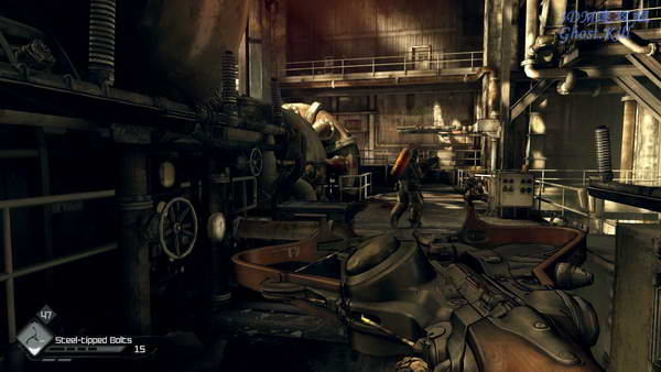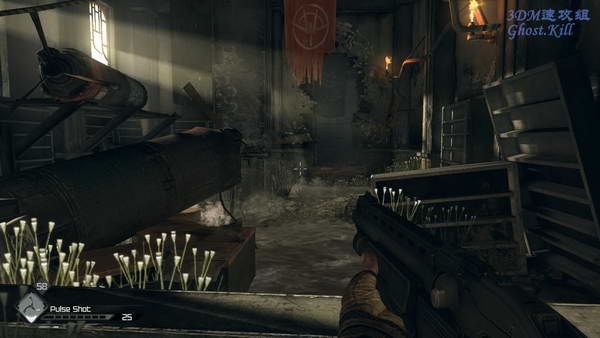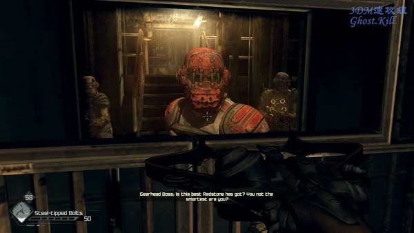 弩箭也必不可少,爆炸弩箭和控制敌人用的弩箭,可以控制敌人的高级兵自相残杀。刚进来的时候有放电的地方, 第一个地方可以关掉电闸,第二个没办法。只能硬着穿过电流。