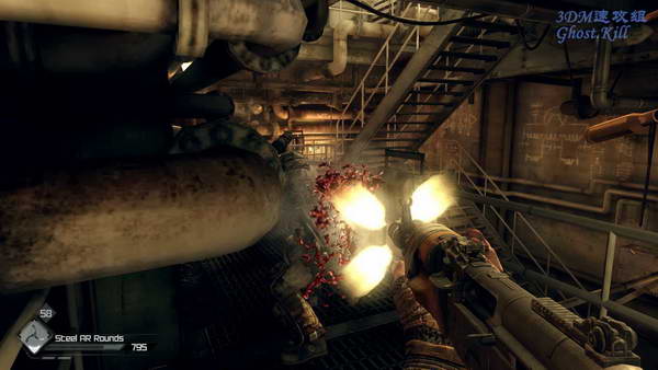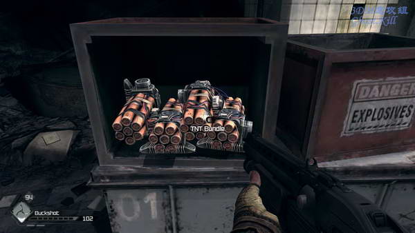 拿上炸药之后身后的卷帘门会关上,楼下不断地有变种人杀上来,原地防守,他们的数量很多, 多用飞刃,无需装弹,也不用瞄的多准,还可以秒杀。