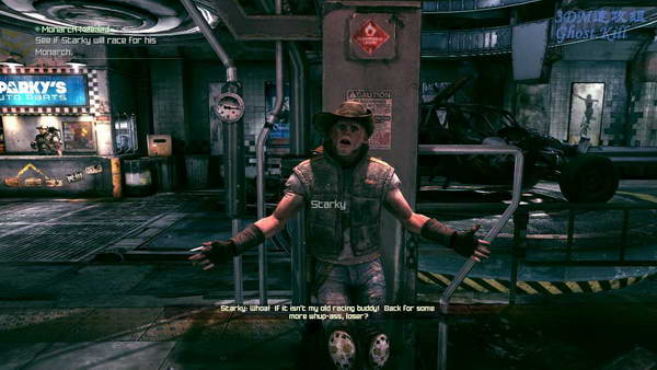 原路返回入口处就可以了,回到地铁城后再去见Redtone接新任务,找下楼的楼梯下去后见到Starky, 和他比赛,跑赢了的话就可以得到他的车,然后回到车库开着新车去目标点。