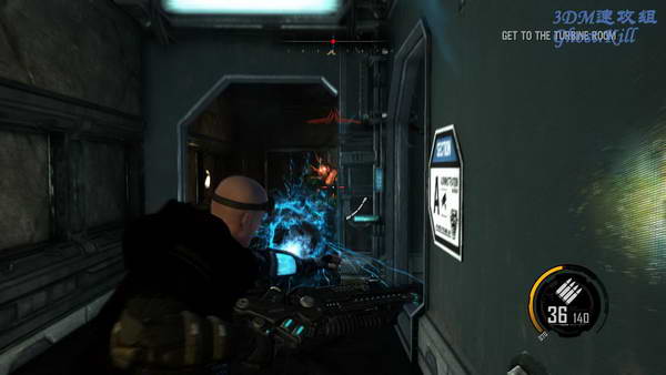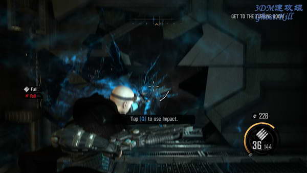 图中这个房间敌人不少,周围环境不较脆弱,很容易被破坏,使用冲击波的话一不小心就会打烂地面掉到下层, 不过反正也摔不死。杀光敌人之后如果房间的三个发电机被破坏掉的话就重新修好,然后继续前进。