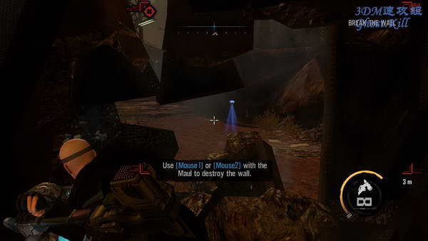 三个都瞄准过之后捡身旁的弹药后前进,前面的路被一面墙挡住了,按1换出锤子来把墙砸开后过去, 过来之后可以在地上捡到等离子炮,威力可观弹药少,一般情况下不要使用。