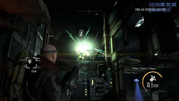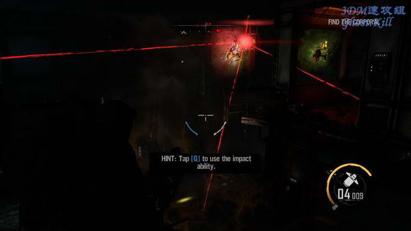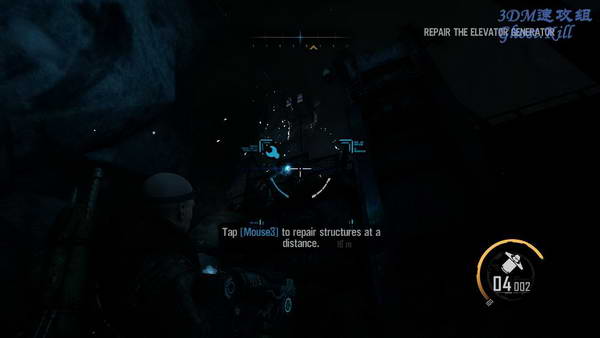 原路杀回电梯下面,对着坏掉的发电机按一下鼠标中键,一个光球会飞过去修好发电机, 电梯降下来之后进去。坐电梯到上层之后遇到队友,不过已经奄奄一息了,最后死在了自己怀里。