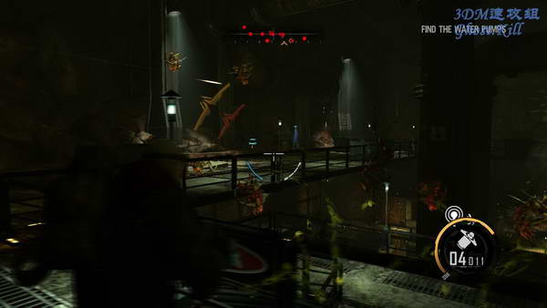 杀的时候小心使用冲击波,地面很脆弱,一击下去说不定直接掉到三层以下,血少的话直接摔死了, 血多的也直接摔没了。杀光所有怪之后修复三个水泵。