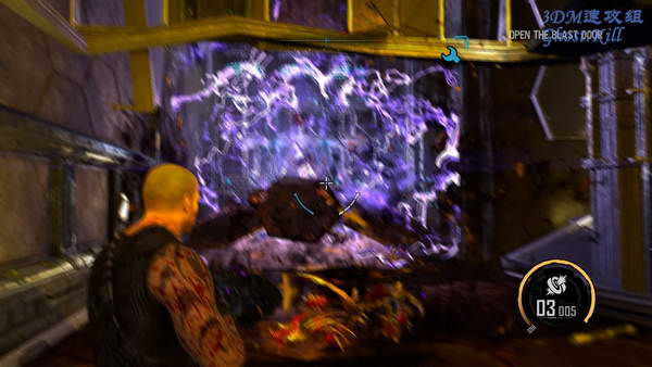 三个发光点都破坏掉之后BOSS会把房间里的掩体都打坏,然后发射激光,激光每次都是从房间一边的头上开始扫射, 所以站在中间等着就行,开始发射的时候使用火箭筒破坏BOSS头上的四个弱点。