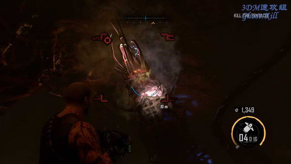 BOSS战开始后跑到房间中央的柱子后面躲着,等BOSS攻击的时候他的胸前和两侧会发紫光, 那就是弱点,用等离子炮攻击,火箭炮也可以,不过后面可能没什么时间补充子弹,建议节约。