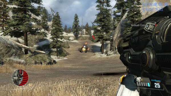 干掉基地大门冲进来的敌人后换出火箭筒沿着道路前进,干掉前面路上三辆敌人装甲车,没必要瞄准,距离很近,直接对着装甲车屁股狂射,左右来回移动可以多开对方发射的导弹。