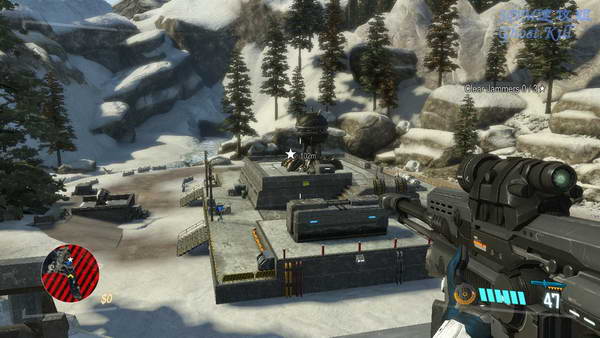 用狙击枪掩护队友,把周围所有敌人都杀光后了队友会过去关掉圆球,把三个圆球都关掉后会空降补给箱,过去把狙击枪换成火箭炮。