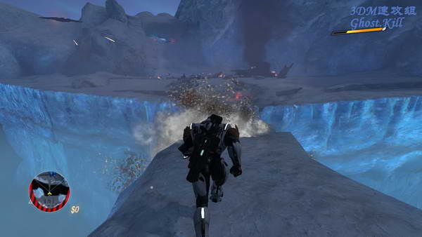 去下一个目标点,一路杀过冰山洞和敌人的基地来到一座断桥,先把对岸的敌人干掉,然后从左边的路到对面去。
