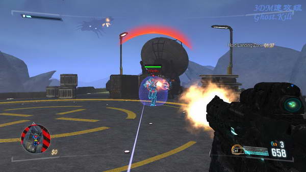 接下来又杀到了敌人的另一个基地,干掉杂兵后到目标的停机坪等待友军飞机,防守的时候要注意,敌人从四面八方都有,不要只顾一遍,他们很积极,都会冲着飞到停机坪上来,多看地图,哪里敌人离得近先打哪。
