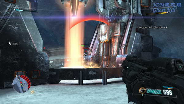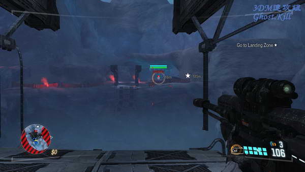 杀完一开始的敌人后通过一座桥来到图中位置,这里有大量的激光障碍,是来回移动的那种,先把能看见的敌人全部干掉,然后看准时机通过激光障碍。